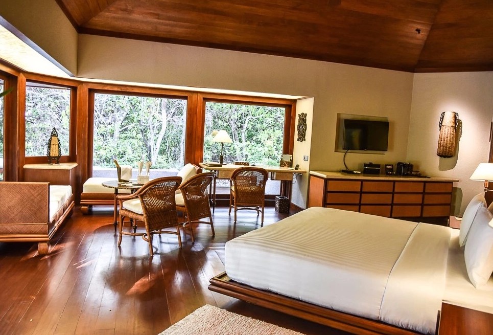 每一家安缦酒店的设计,都要对当地文化进行考察研究。菲律宾知名建筑师 Bobby Manosa 将现代设计思维和传统建筑风格,以及自然景观良好的结合在一起,达成了最完美契合。