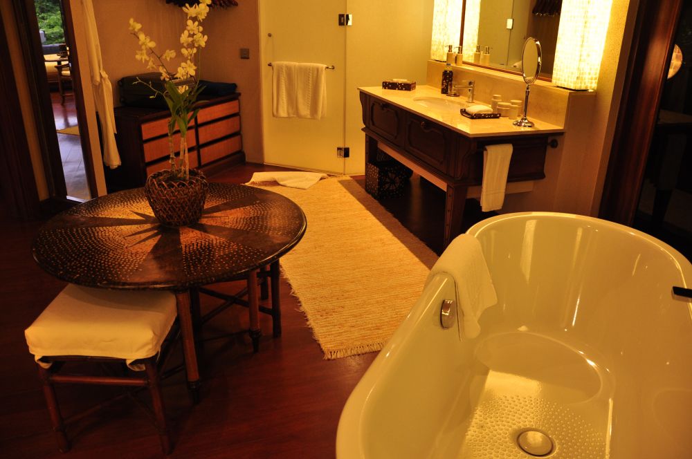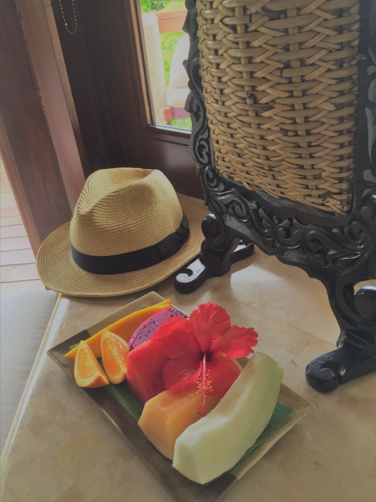 安缦酒店的另一个特色,是其低调但细致的服务。虽然该岛上有约400名各类服务人员(人数远超住客),但大多时候你根本感觉不到他们的存在。然而他们却又好像无处不在,总能及时地满足你各项需求。比如我刚出去转了一圈,回到房间时饮品和水果已经摆在了桌上。