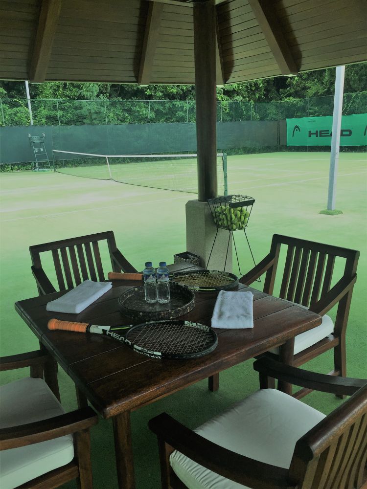 球拍,毛巾和水已经准备就绪,服务无微不至。