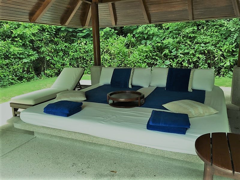 宽敞的SPA水疗馆坐落于山丘之上、树冠之巅,凉亭下坐享蔚蓝天空与翠蓝大海,凉风习习,无比畅快惬意。