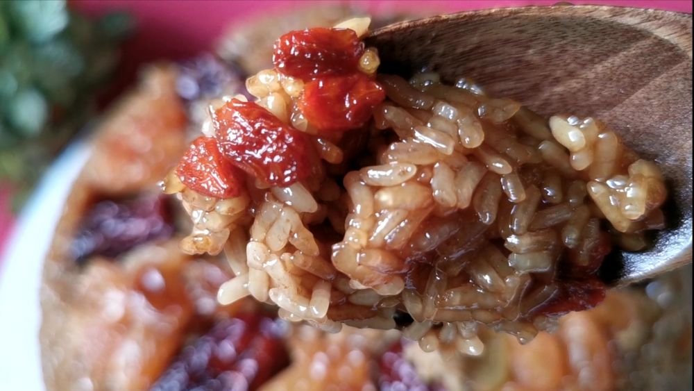 红糖糯米饭,甜而不腻,口感软糯香甜,透着红枣和葡萄干独特的味道,喜庆的深红色很适合做年菜,关键是做法超简单!推荐给大家。