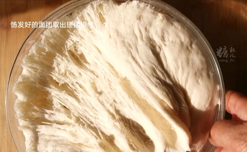 以上外皮原料混合,揉成面团,覆盖饧发至两倍大小