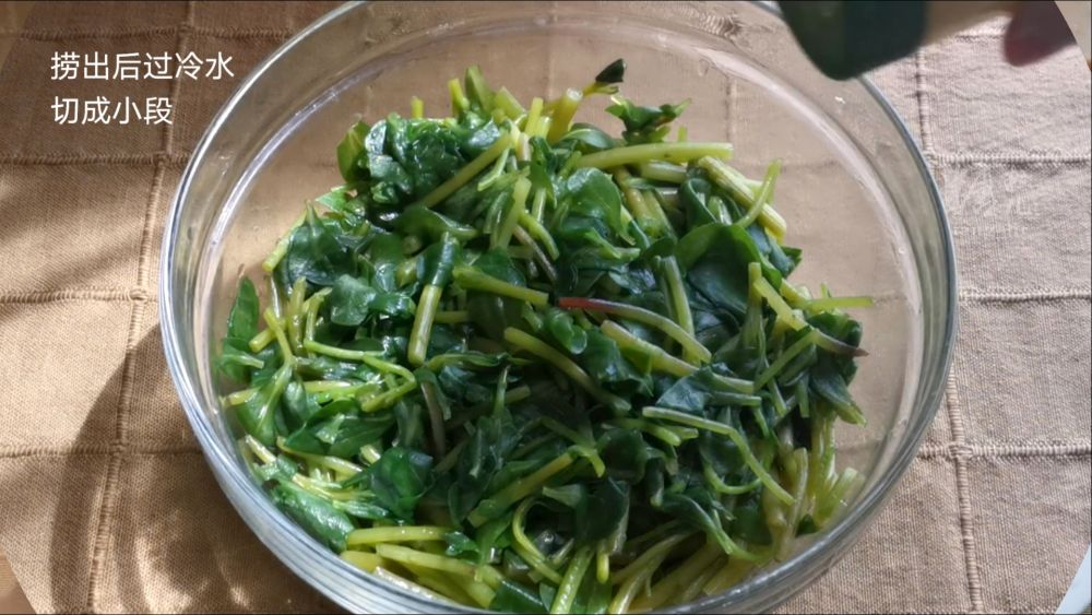 一、新鲜马齿苋洗净,去除杂草,沸水焯一下迅速捞出过冷水