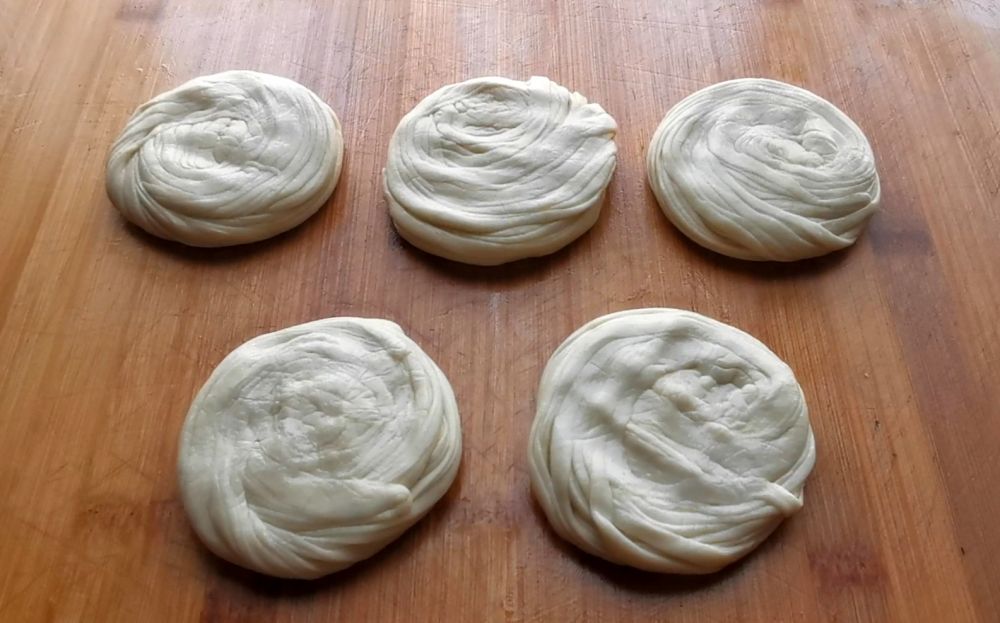 四、卷起来压扁做成小饼胚