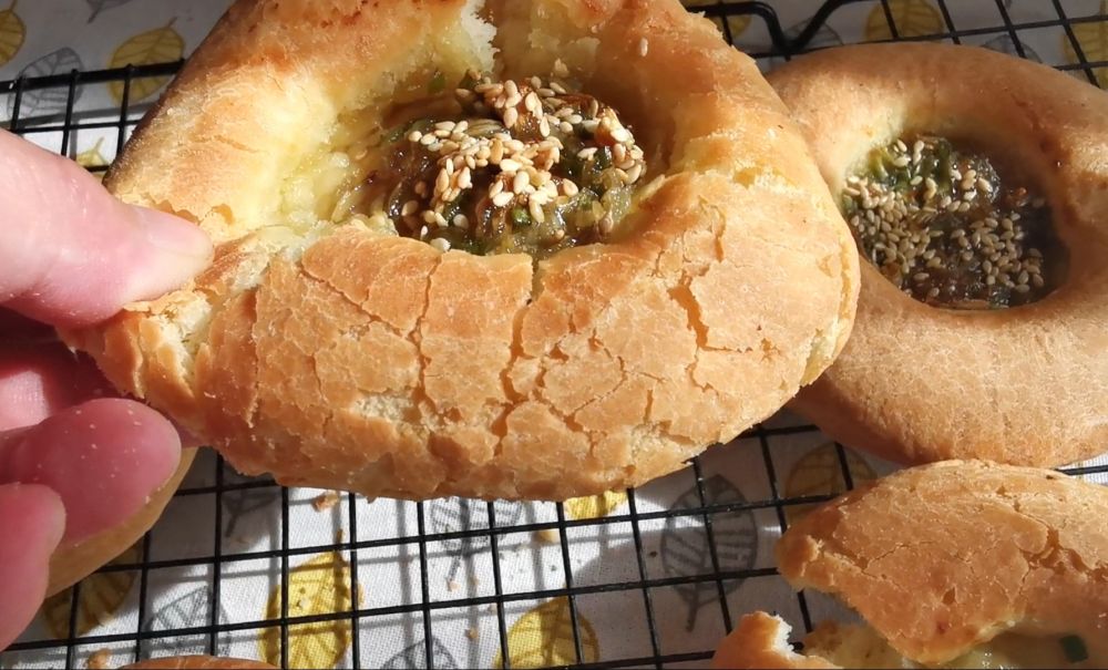 外皮掉渣,蓬松萱软,咬一口麦香扑鼻,麦香和着蒜香、芝麻香,口口越嚼越香。