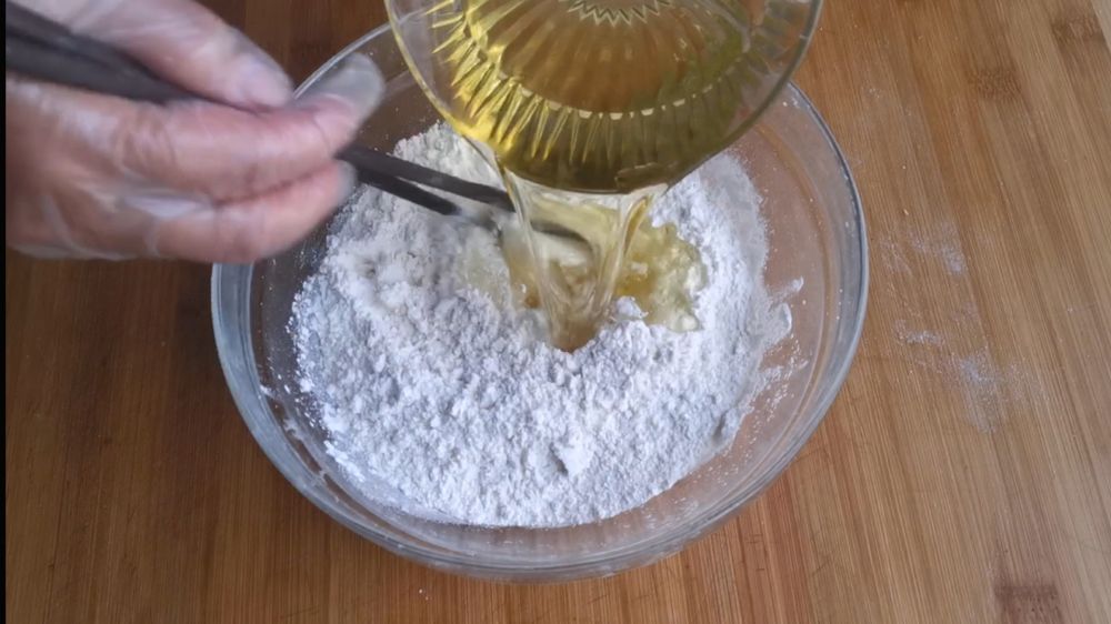 普通中筋或低筋面粉250克,食用油60克(猪油效果更佳),清水120~130毫升。搓揉5分钟左右(不需要揉出手套膜),覆盖饧面30分钟。