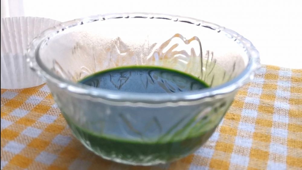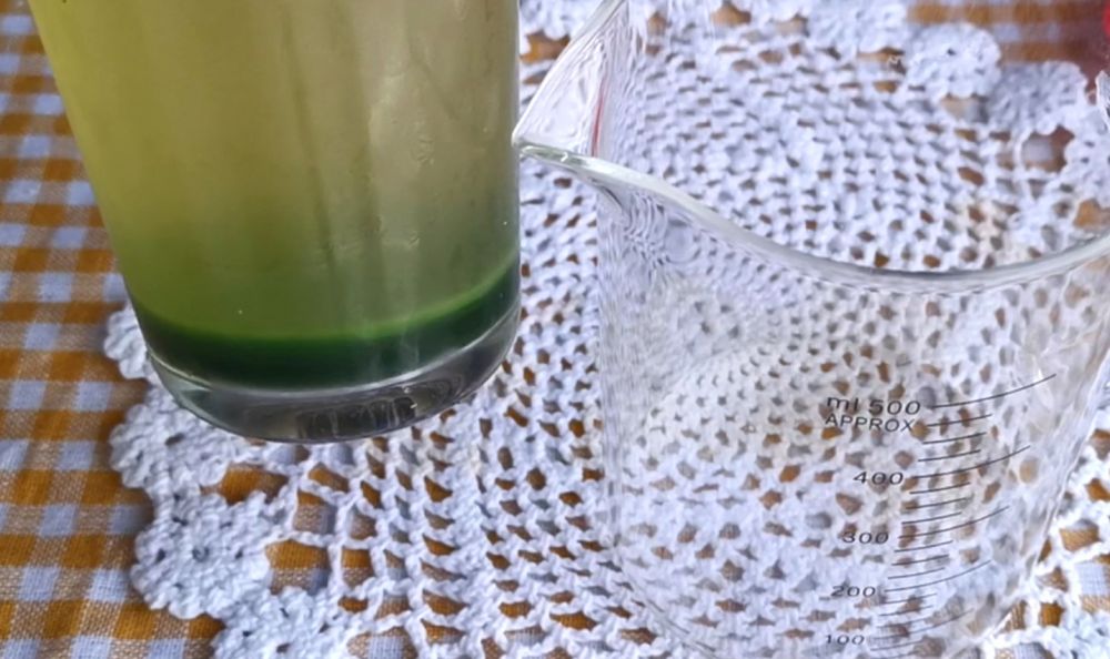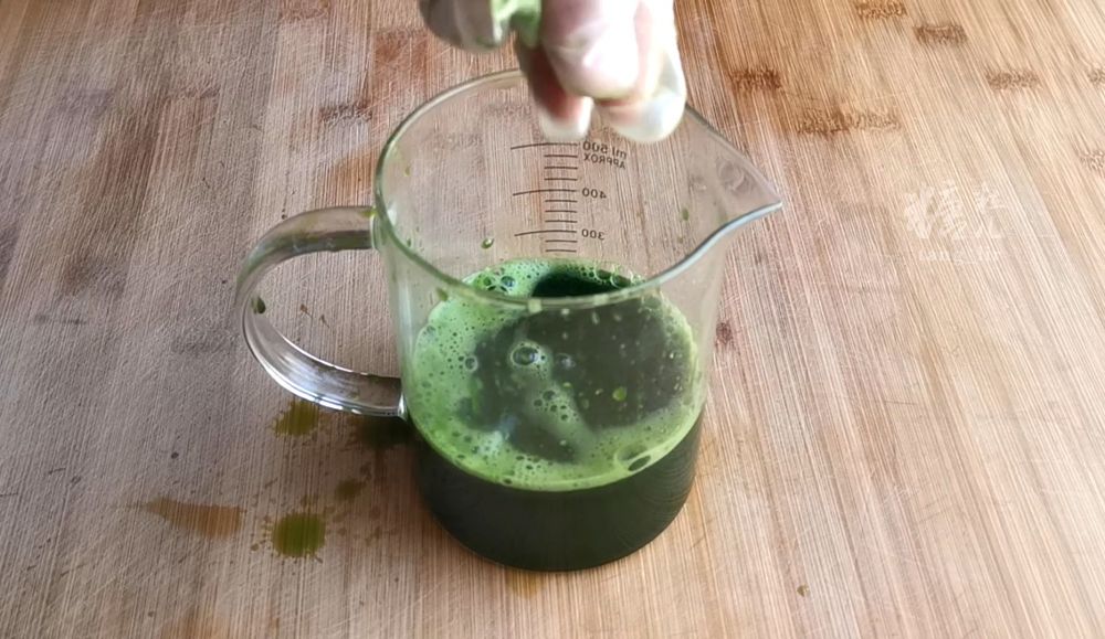 三、去掉表层清水,班兰汁精华将沉淀在容器底部