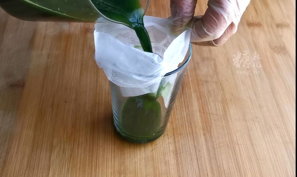 过滤出班兰叶残渣,放入玻璃容器,覆盖放入冰箱冷藏区静置至少24小时