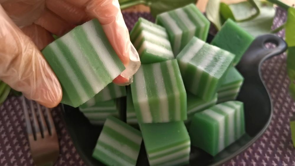 用班兰汁和椰奶做了这个清香爽口又Q弹的班兰椰汁千层糕,翠绿翠的透着浓浓的班兰、椰奶香,无论是做为餐后小甜点还是小零食都很不错,孩子尤其喜欢!也没有添加剂,做法也简单,很适合夏天来一盘,分享给大家。