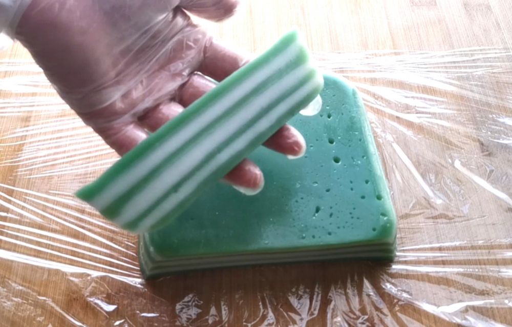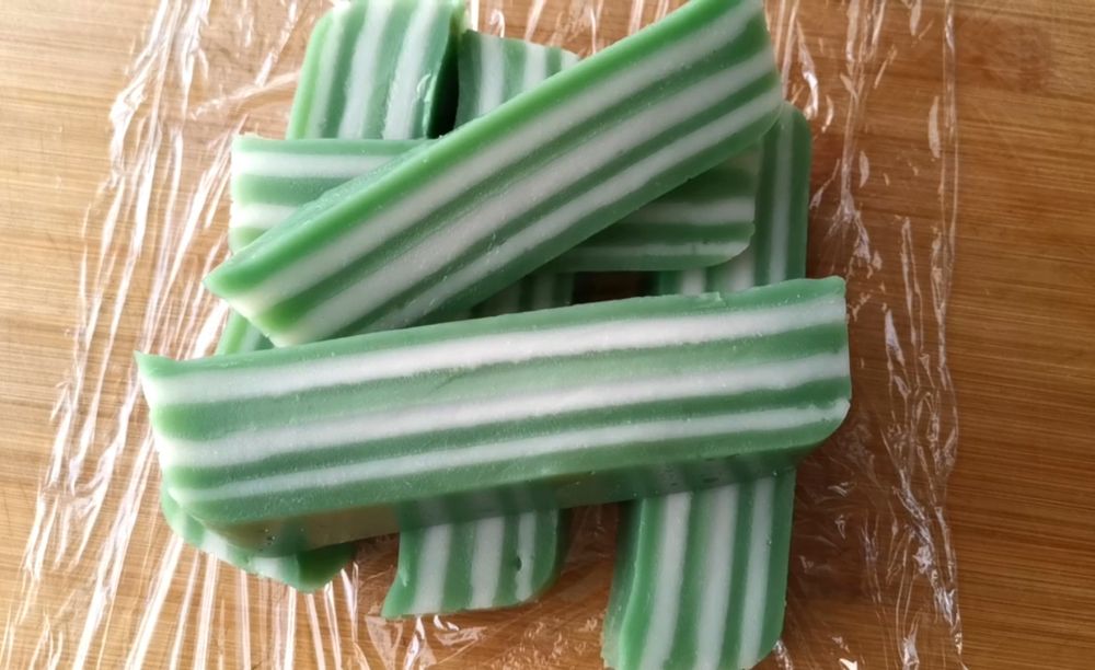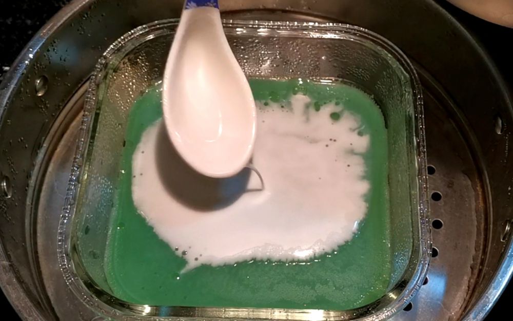 混合均匀白色层和绿色层两种原料,班兰汁的制做方法我会放在最后