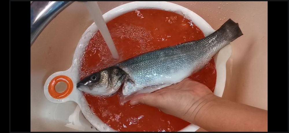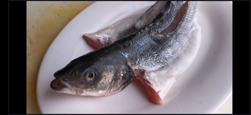 一、新鲜鲈鱼一条处理后洗净,内外各划浅浅的两刀后摆盘