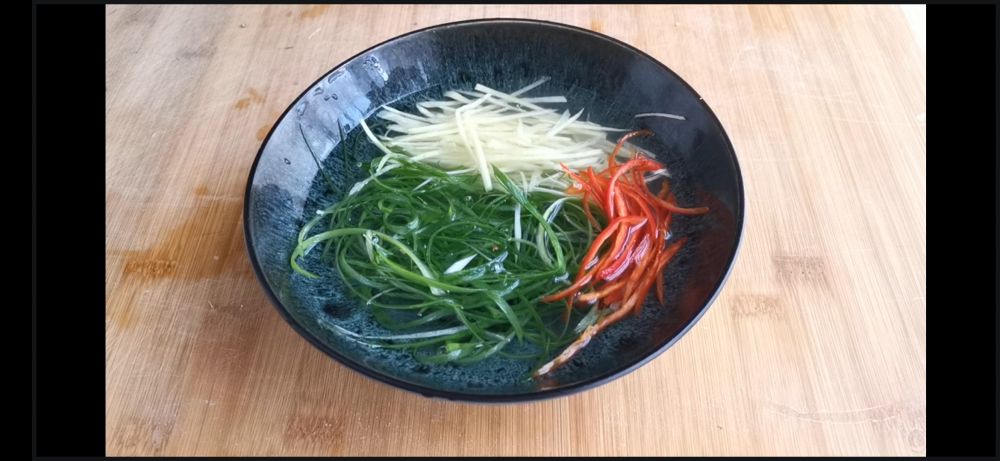 二、准备配料,就三种,切丝备用