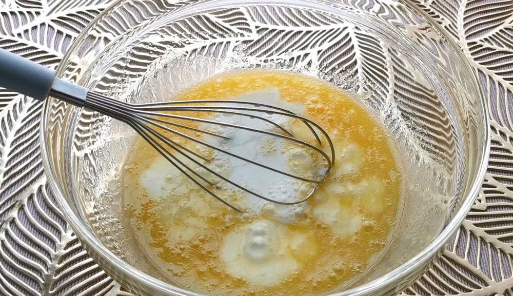一、将以上面糊原料混合,搅拌成细腻无颗粒的面糊备用