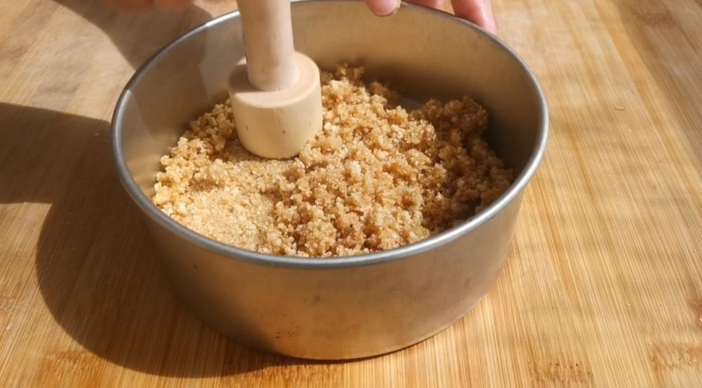 一、饼干碾碎加黄油拌匀,倒入模具,压实后放入冰箱冷藏