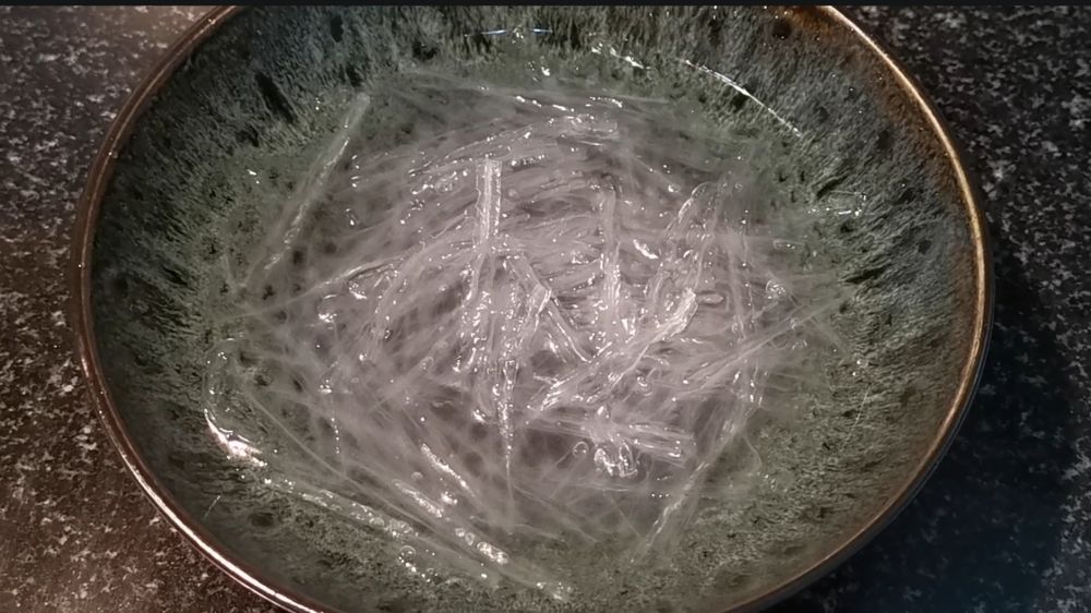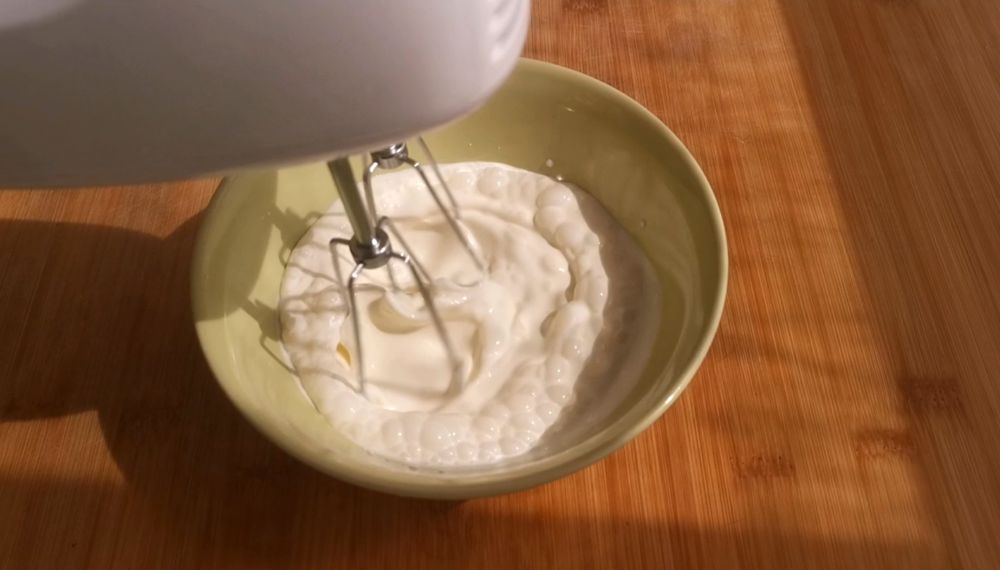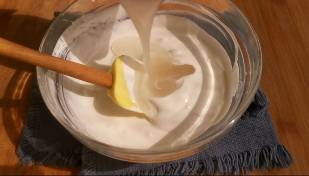 二、奶油奶酪中加入酸奶和白糖搅拌均匀,燕菜条提前浸水,加入清水煮成100毫升无颗粒的燕菜胶,去70毫升加入奶酪酸奶糊中混合均匀(也可用吉利丁粉替代燕菜条,用量见视频