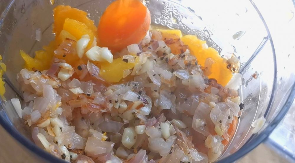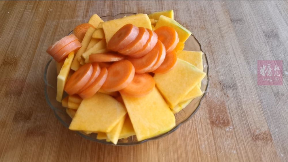 一、南瓜胡萝卜切片蒸煮,和爆香的洋葱蒜碎混合,加鲜奶搅打成糊,用黄油混合干面粉备用