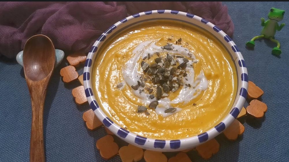 南瓜大量上市的季节,吃惯了甜甜糯糯的各种南瓜美食,换个口味,试试这道口感顺滑,回味绵绵的南瓜浓汤吧!做法简单,营养丰富,超好吃。