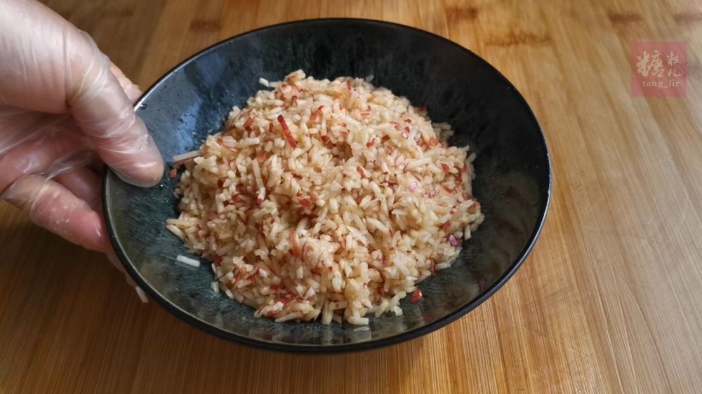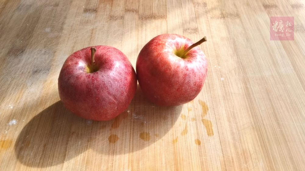 二、两个苹果写成小粒挤水备用,并准备棕糖和肉桂粉拌匀