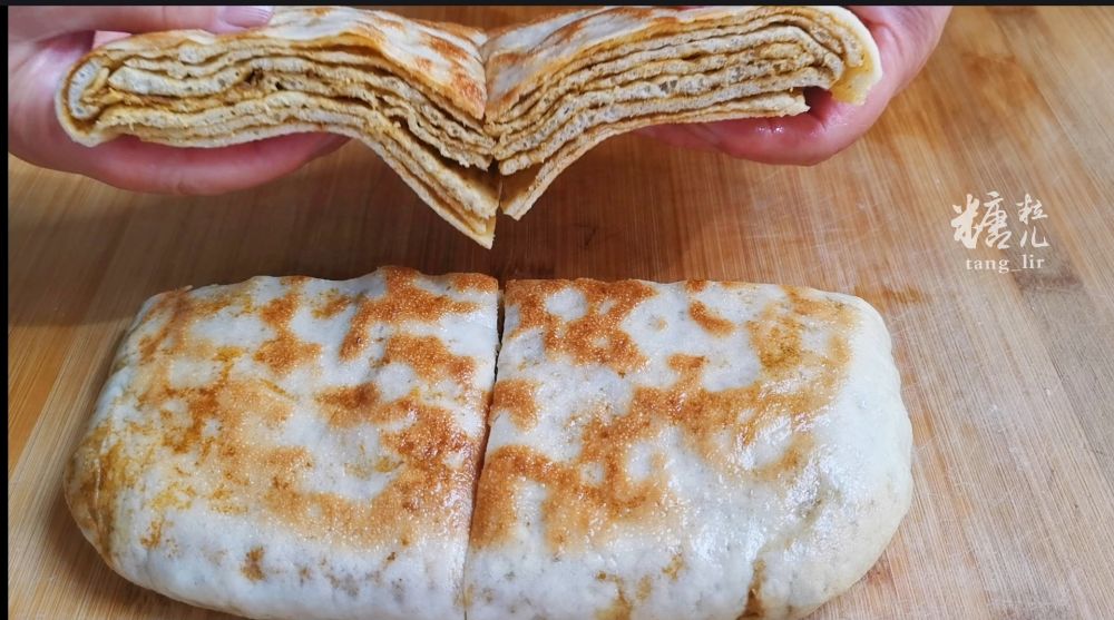 【烧烤味千层大饼】,如书本一般多层柔软,透着独特的烧烤香味,无需提前发面,一次发酵就能轻松搞定,省时省力很好做,而且超好吃!看着也很诱人,做法推荐给大家。