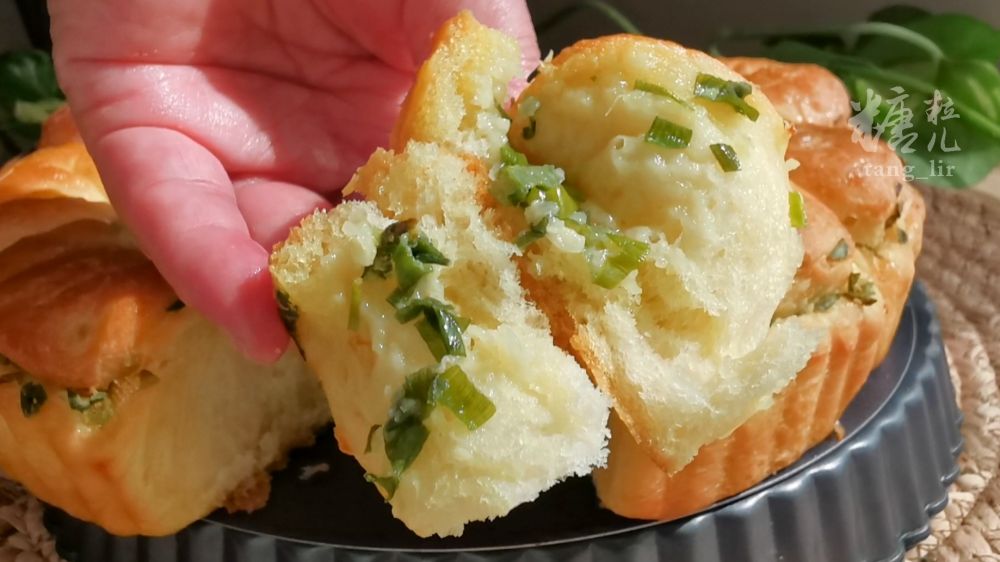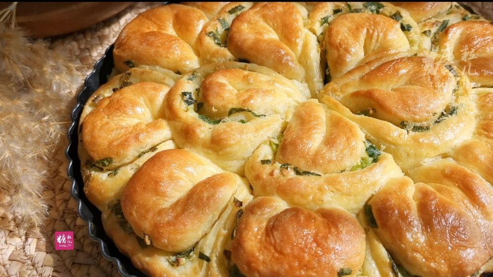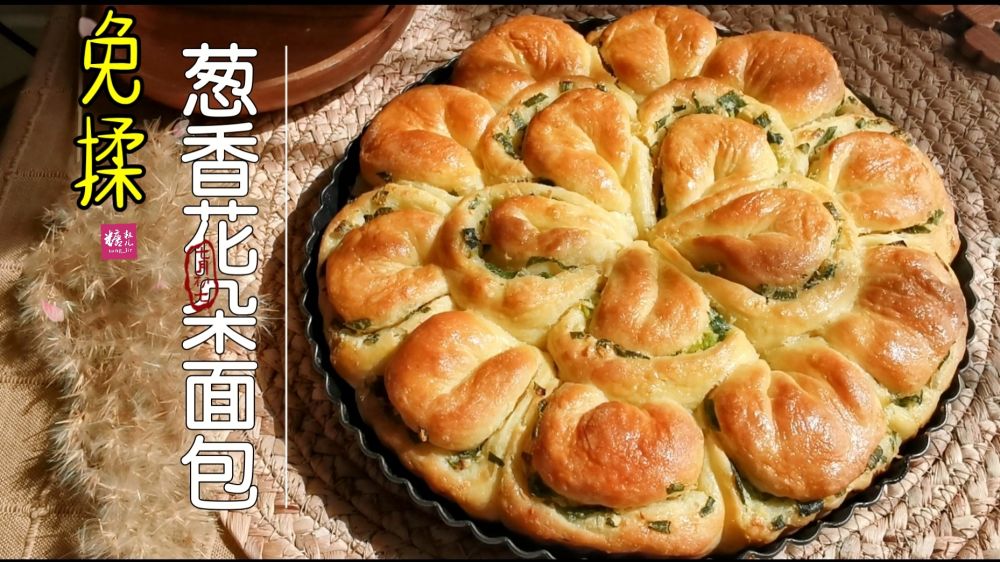 表面金黄微酥,面包体蓬松萱软透着浓郁葱香黄油香,造型似盛开花朵诱人、免揉配方让制做过程很简单零失败,好吃到欲罢不能!