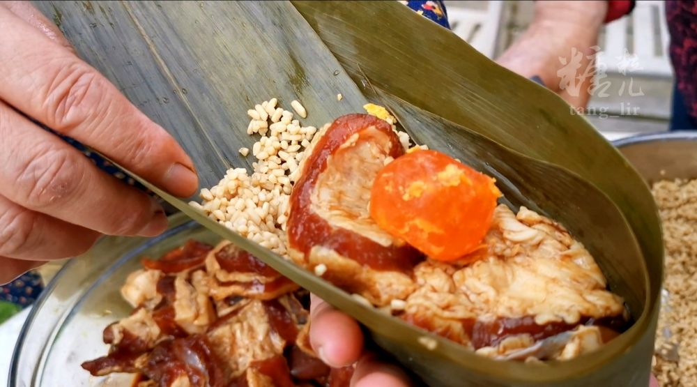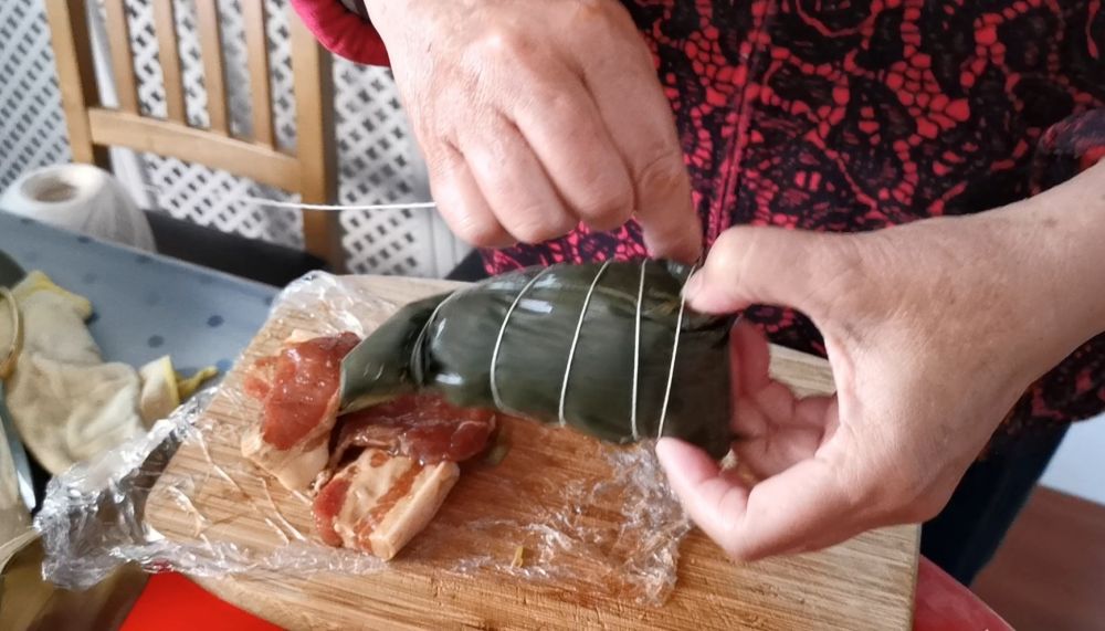 上海阿婆演示从腌肉、泡米,到包粽、煮粽全过程