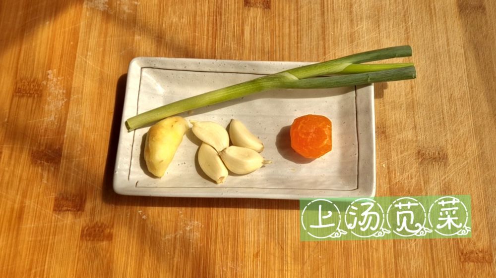 一、几粒大蒜瓣用刀拍扁,生姜2~3片,一个咸蛋黄切碎,一根小葱切成葱花,一把苋菜洗净备用