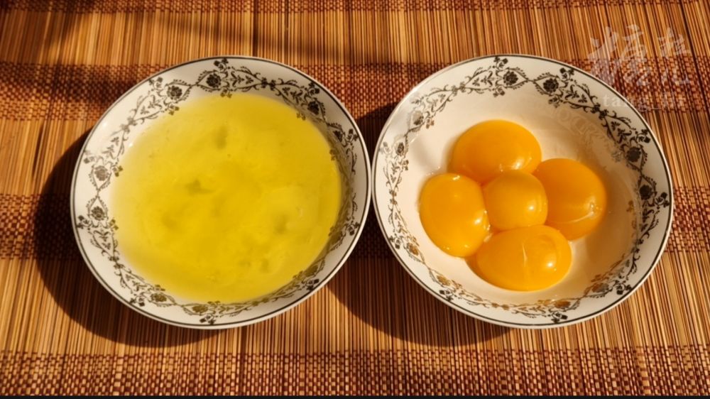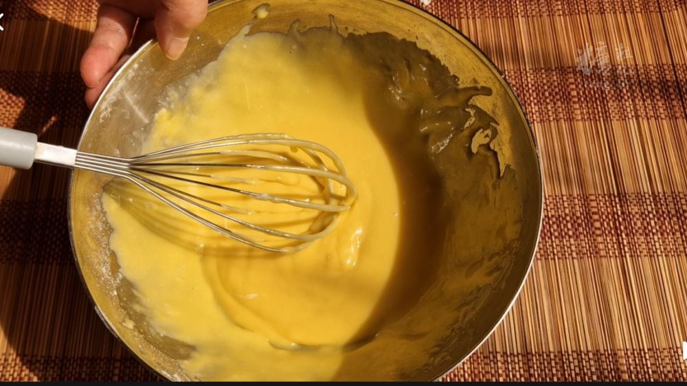 一、五个鸡蛋蛋清蛋黄分离,蛋清冷冻10分钟,以上原料混合,最后加入五个蛋黄搅拌成光滑的蛋黄糊