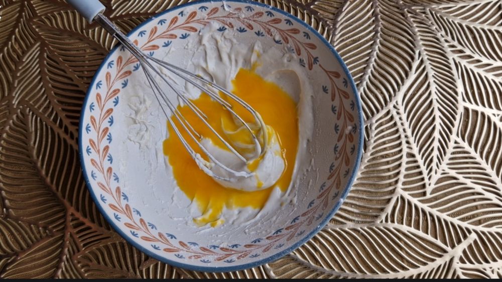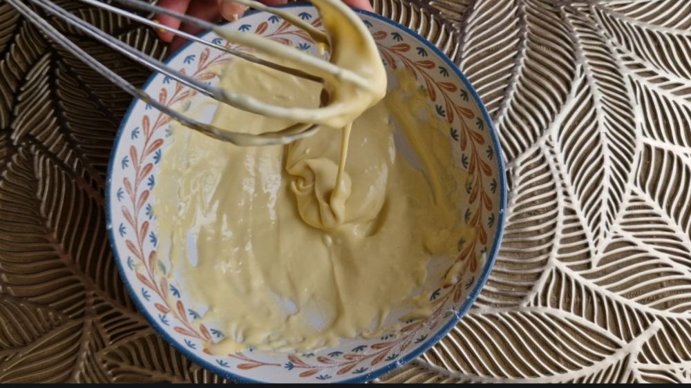 一、分别用以上原料混合成光滑细腻的咖啡蛋糊和椰奶蛋糊,两个蛋清提前冷冻10分钟,取出后加入白醋和白糖,用电动打蛋器打发成直立尖角的蛋白霜