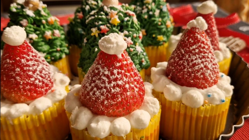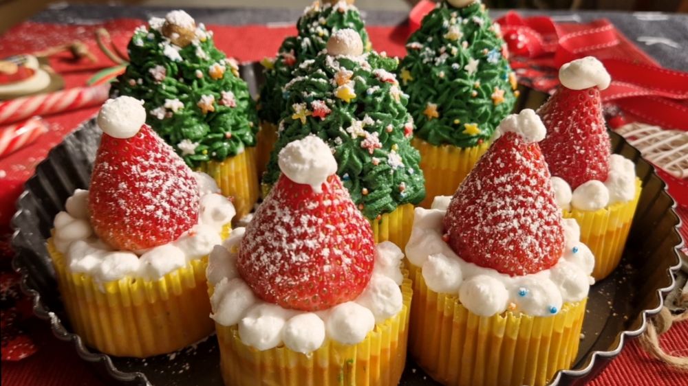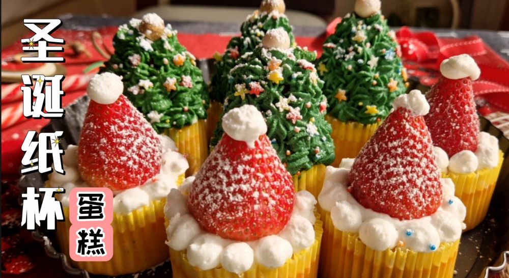 圣诞节到了,分享这款做法简单,节日气氛满满的[圣诞风杯子蛋糕]给朋友们,糖粒儿在这里提前祝福大家:Merry Christmas!