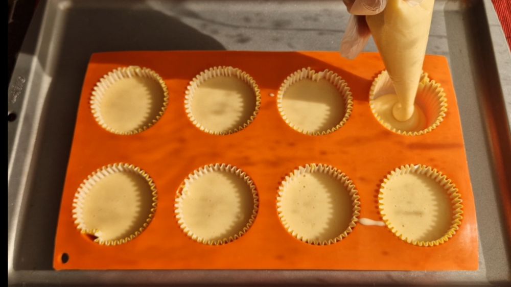 鸡蛋无需分离蛋清蛋黄,加入糖粉或者细砂糖电动打蛋器打发到可以拉出痕迹,分次加入低筋面粉混合均匀,倒入模具八分满,提前预热烤箱,160摄氏度烤25分钟左右,脱模自然冷却备用
