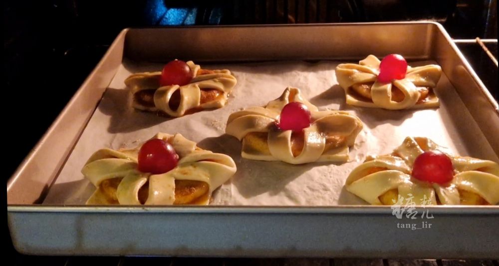 出炉后撒上糖霜享用,酸酸甜甜的好吃,而且超有颜值特别好做,喜欢吗?快试试!