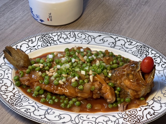 没起大油锅,但鱼还是炸的酥脆,淋上糖醋汁,蛮好吃的。