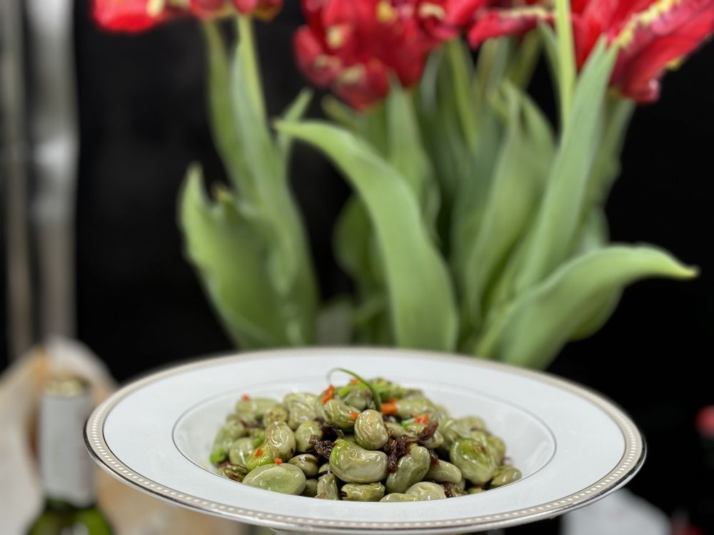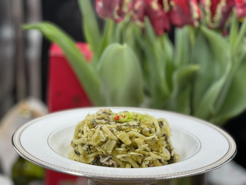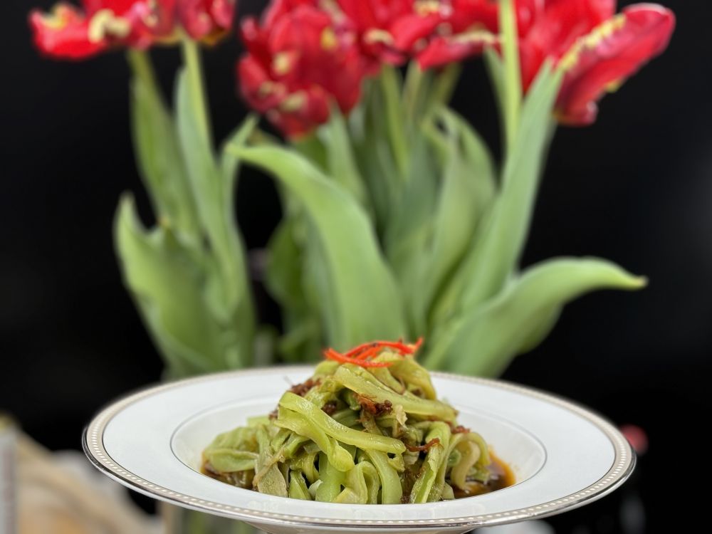 所谓贡菜其实就是用莴笋晒干而成的,用了昆布酱油和意大利黑醋。清爽、香脆。