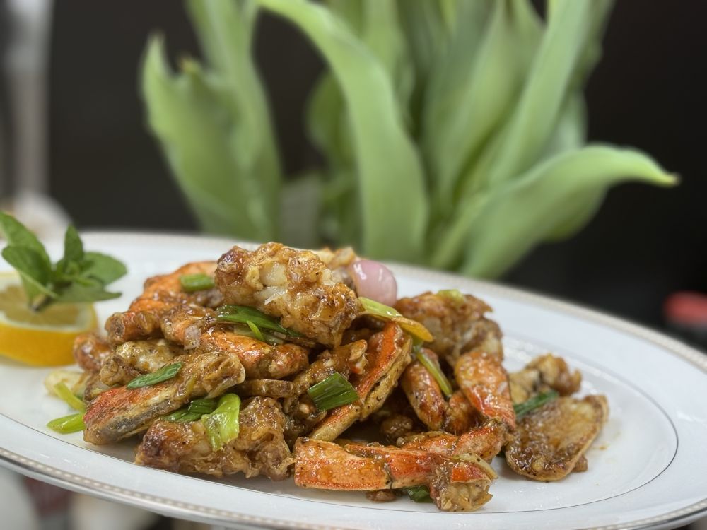 趁螃蟹依然便宜,继续拿手的姜葱炒螃蟹,称得上炉火纯青。