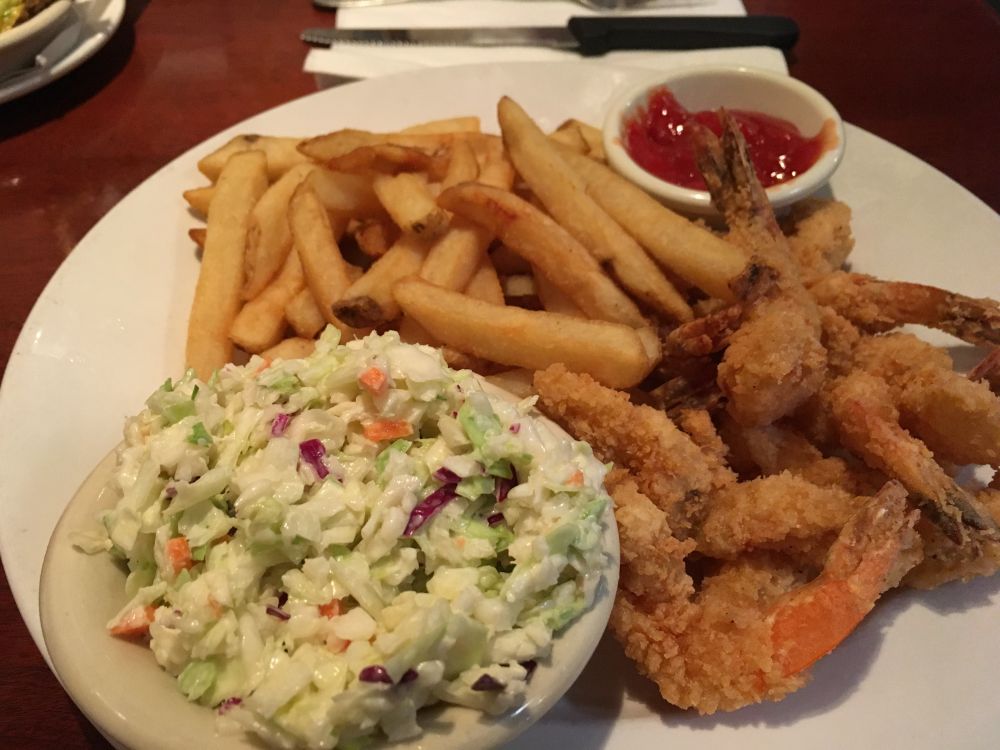 我点的啤酒虾。我以为旁边的红汁是蘸土豆条的。结果catchup在桌子上大瓶里。这个红汁是蘸虾的