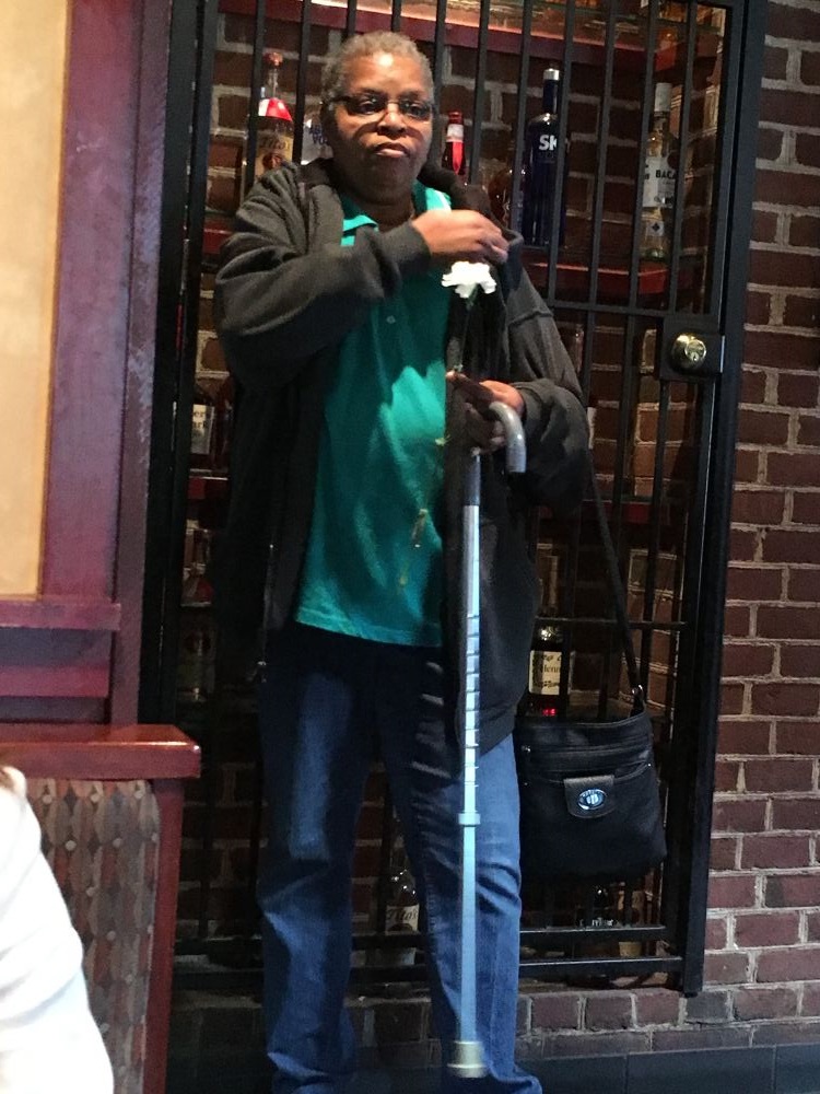 霸气十足大妈手持白色康乃馨与我们共进晚餐,不同桌