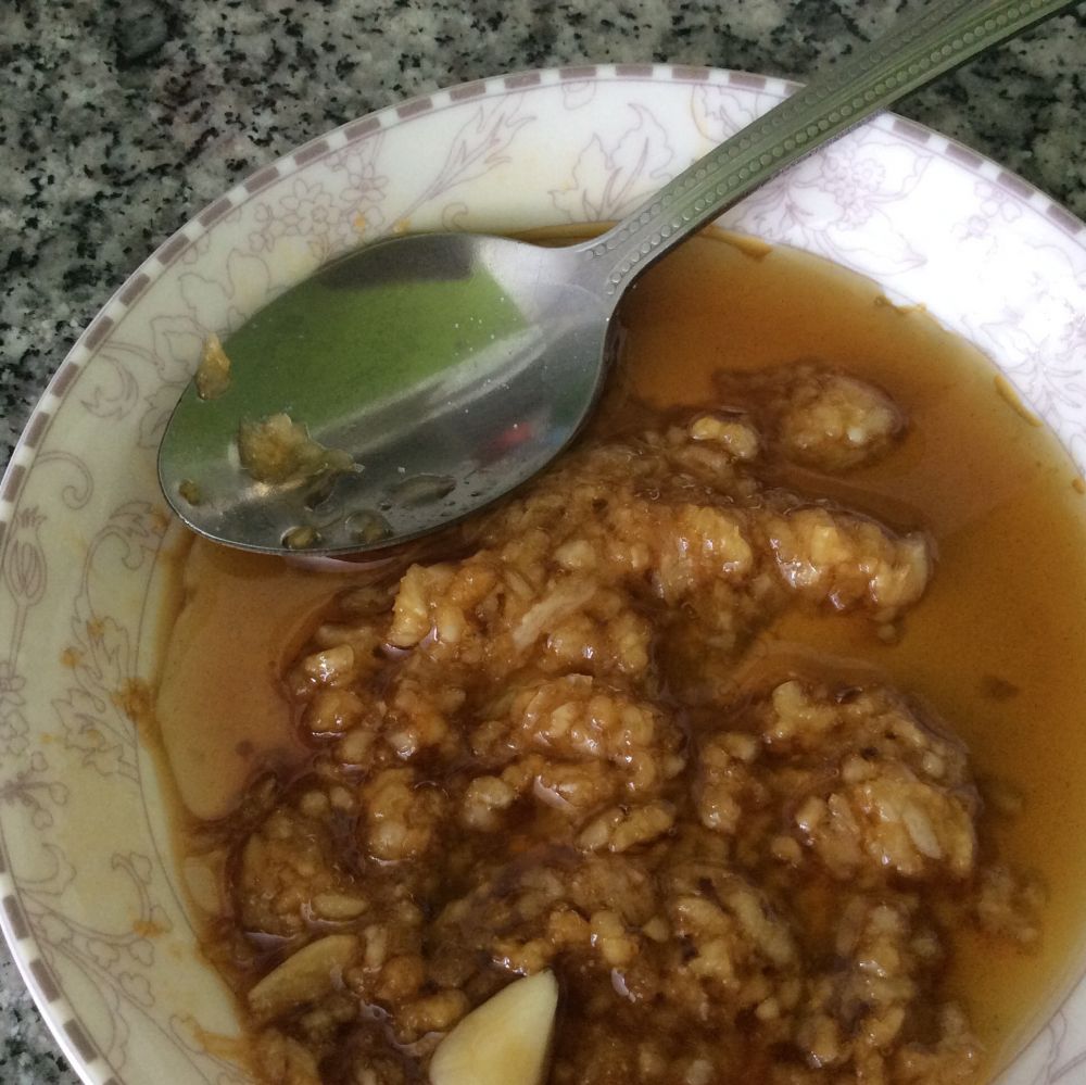 炒好的西红柿酱和蒜泥香油