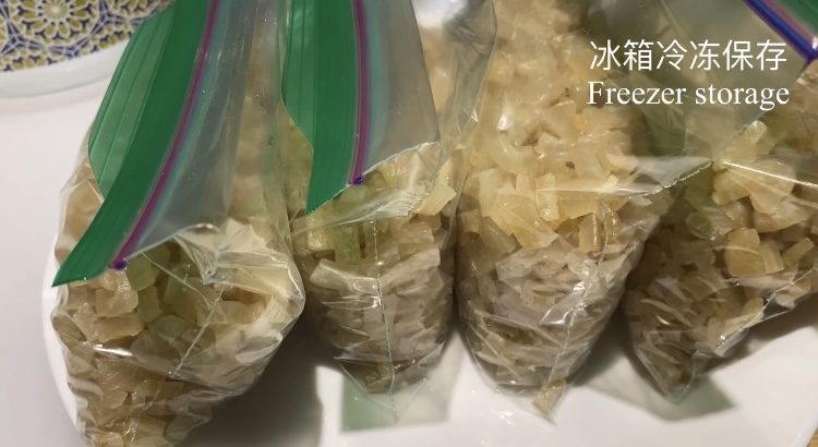 处理好猪皮,冷冻保存,就可以随时做点皮冻来解馋了。