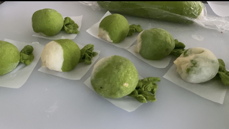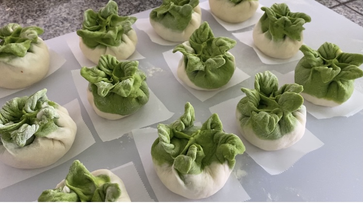 包好的白菜包子,颜色很亮丽,突发奇想顺手包了几个萝卜包,呆萌萌的哈!视频里没有展现它们