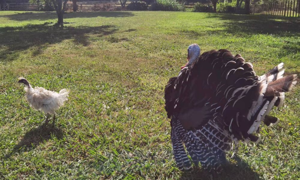 美貌的代母小凤冠, 看看 火鸡查理的孩子们 多弱小 同样时间孵出来的 其它小凤冠们 看上去 比 小查理们 强壮的多, 成长的也迅速