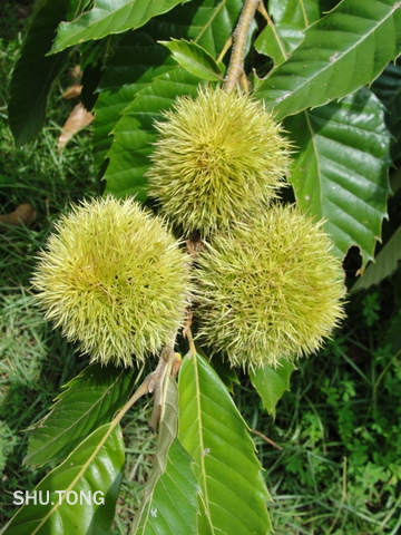 小小的栗蓬就越长越大,有的小枝条都给压弯了。。。