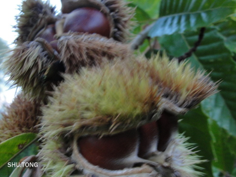 这是前几天拍的图片,当时栗蓬刚刚泛黄色。往年一般