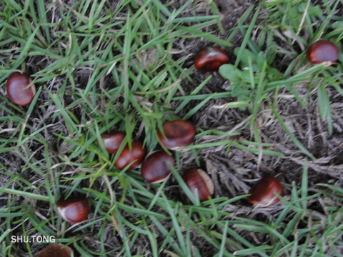 栗了。这是今天早上那阵秋风把它们刮了下来的。。。