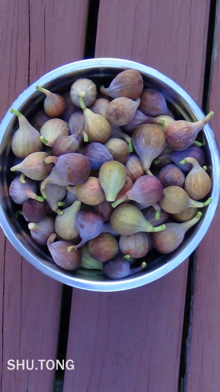 今天摘了一大盆足有3-4磅,那几个呈蓝色的无花果最好吃。