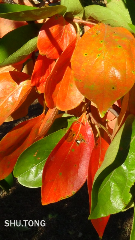 枣树,梨树上的叶子开始飘落。这个周末摘了些变红的Fuyu