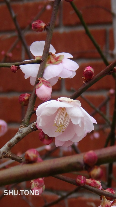 我这一品种的梅花开花时是粉红色的,等开了大约一天后就