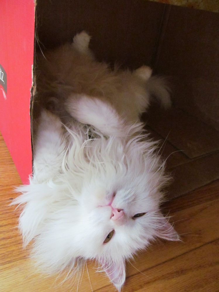 麻麻绞尽脑汁哄着小贝吃点儿干湿粮.这是在沙发底座里的大木盒子里. 小贝就喜欢在这里睡觉.