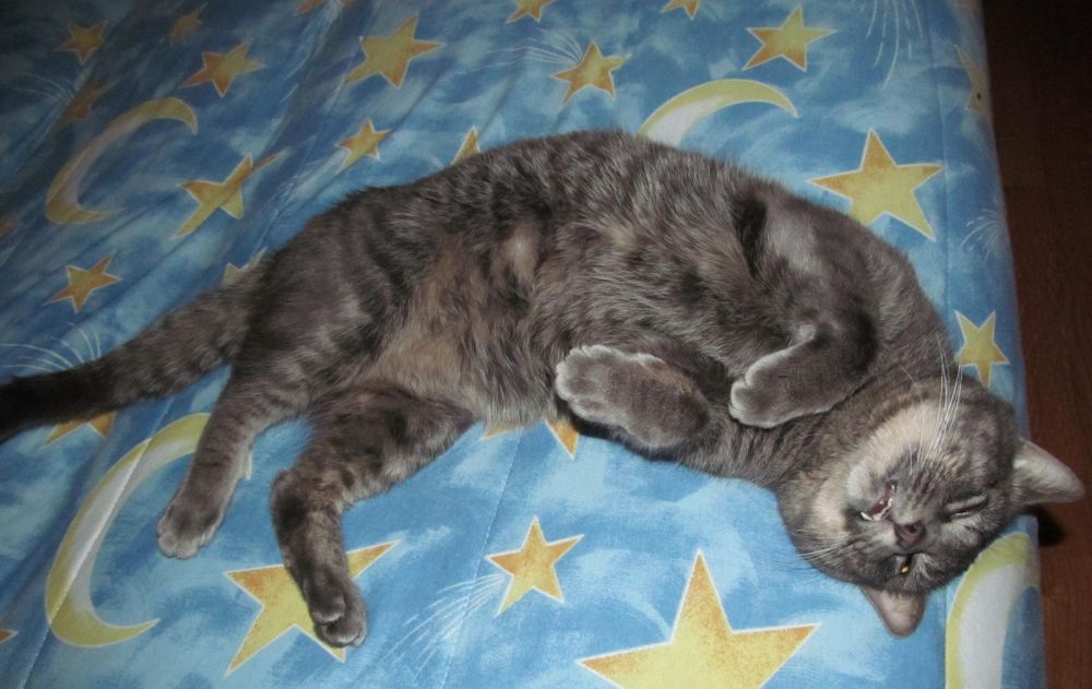 (小灰的PP被小美脸上的癣传染了, 有小指甲这么大. 现在痊愈了.癣处抹药后给他穿上小衣服, 他就添不着药了)