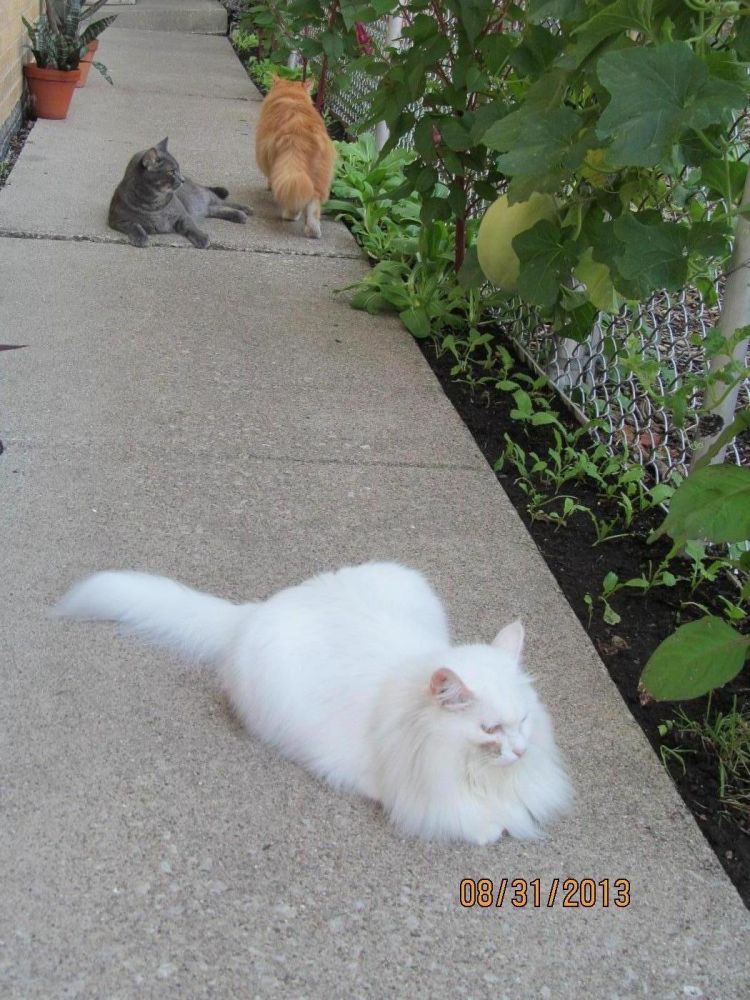 (小贝滚了菜地的湿土, 给她擦洗身子毛毛没完全干呢,让她晒晒太阳)