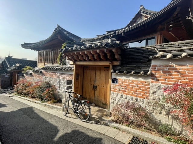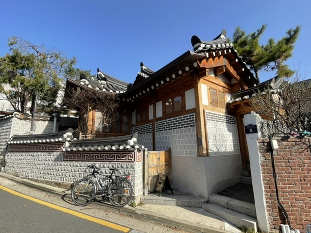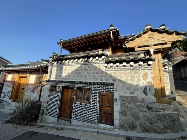 北村从以前起就是众所周知的两班贵族居住地区,里面的住宅全是朝鲜时代的青瓦房,作为上流阶层的建筑形态保存至今。最初这里仅有几户高耸大门的贵族人家和30多户韩屋,而在日本统治末期和6.25韩国收复之后才渐渐增加、发展成现在的面貌。 北村韩屋村位于景福宫、昌德宫和宗庙之间,是与首尔同风雨600年的韩国传统居住区。 宏伟的宫殿建筑之间聚集着的这些韩屋及树杈般分布的小巷都保存着原本的模样,完整地呈现出六百年前的迷人风貌。 如今作为传统文化体验馆或韩屋餐厅,间接地向访客们展示着朝鲜时代的氛围。